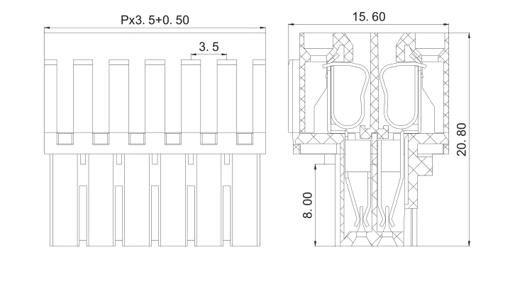KF2EDGKE - 3.5 كتل موصلات لوح الدوائر الإلكترونية بدون براغي، صف مزدوج، قابله للتوصيل، عرض 3.5 مم، كتلة طرفية أنثى
