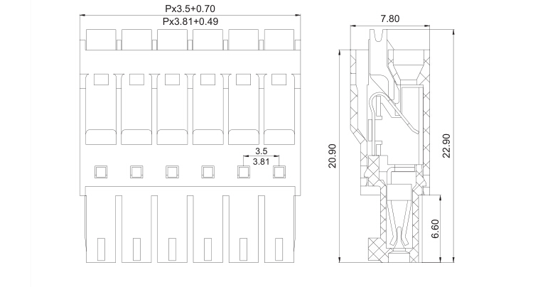 يتميز موصل كتلة الطرفية này بمسافة عرض 3.81 مم، والتي تشير إلى المسافة بين الدبابيس، مما يوفر حلاً توصيلاً مدمجًا ومرتبًا. وهو يدعم جهدًا يصل إلى 300 فولت ويمكنه تحمل تيارًا يصل إلى 10 أمبير، ما يجعله مناسبًا للأنظمة الكهربائية ذات القدرة المنخفضة إلى المتوسطة. وهذا يعني أنه يمكنه نقل الإشارات الكهربائية والطاقة بأمان دون التسخين الزائد أو التسبب في تلف المكونات المتصلة