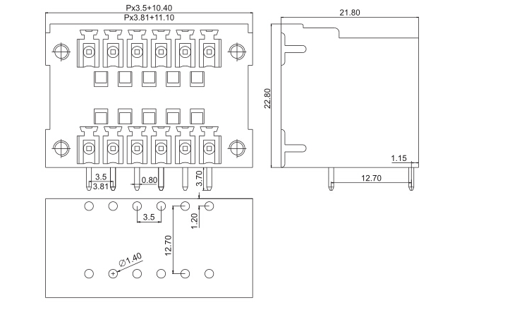 إن قطعة التوصيل الصغيرة القابلة للتوصيل على لوحة الدوائر الكهربائية ذات الملعب 3.81 مم من KEFA KF2EDGRHM-3.5-3.81، وهي كتلة طرفية كهربائية، تمثل موصلًا عمليًا وموفرًا للمساحة، ويجمع بين سهولة الاستخدام والتوصيلات الآمنة والأداء الكهربائي الموثوق لمجموعة متنوعة من المشاريع الإلكترونية والكهربائية