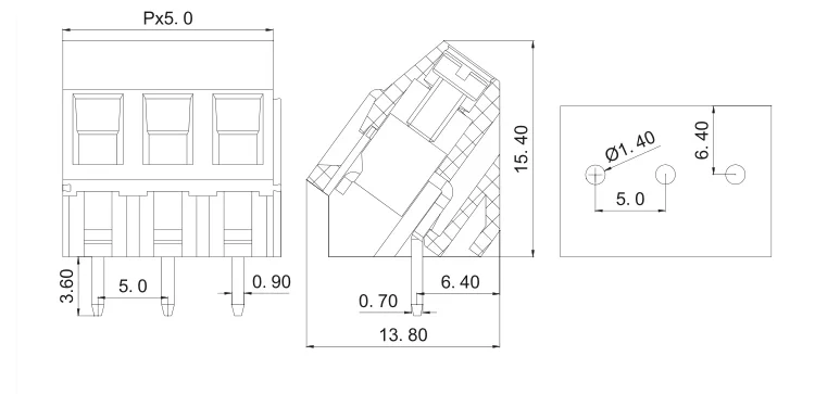 2P-24P 5,0 mm KF250T-5,0 TÜV-zugelassen Doppelschicht-PCB-Federklemme Schwarz 17.a Anschlussklemme